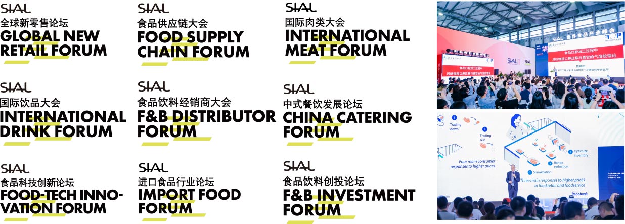 | SIAL創(chuàng)新大賽 / 引領(lǐng)食飲創(chuàng)新風(fēng)尚 SIAL 中國茶飲調(diào)配師大賽 / 健康茶飲,樂享生活 美食廚房LA Cuisine中國國際頂級(jí)廚師邀請(qǐng)賽 / 匯集全球頂尖大廚烹飪創(chuàng)意 SIAL中餐廳 / 中國風(fēng)味蕾新體驗(yàn) SIAL航旅餐錦標(biāo)賽 / 引領(lǐng)航旅餐行業(yè)的最新發(fā)展趨勢(shì) SIAL 零食節(jié) / 集合新興零食消費(fèi)場(chǎng)景 SIAL CUP 咖啡師全能賽 / 領(lǐng)略國內(nèi)專業(yè)咖啡師風(fēng)采活力 鮮生活·名優(yōu)水產(chǎn)食材推介 | |||
