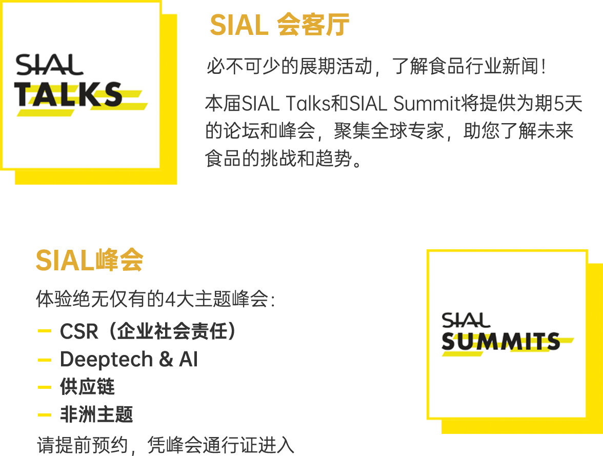 本屆SIAL Talks和SIAL Summit將提供為期5天的 論壇和峰會,聚集全球?qū)<?,助您了解未來食品的?br />戰(zhàn)和趨勢