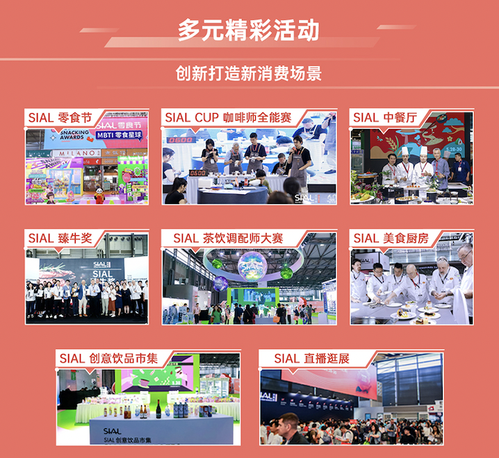 SIAL 西雅展始終以驅(qū)動(dòng)食飲行業(yè)的創(chuàng)新與高質(zhì)量發(fā)展為己任。在“Inspire Food Business”這一價(jià)值主張下,SIAL 西雅展還打造了SIAL INNOVATION創(chuàng)新大賽、SIAL世界食品產(chǎn)業(yè)峰會(huì)、SIAL in China Awards西雅國際金獎(jiǎng)等均具有行業(yè)引領(lǐng)意義的活動(dòng)和峰會(huì)品牌。這些活動(dòng)和峰會(huì),也將為參加SIAL 西雅展的展商和專業(yè)人士帶來行業(yè)創(chuàng)新發(fā)展的前沿動(dòng)態(tài)和趨勢(shì)觀察。