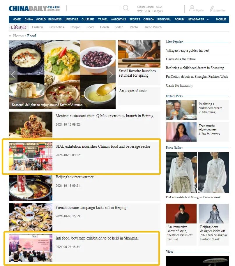 SIAL 2022國(guó)際食品展新聞發(fā)布會(huì)獲得了China Daily官網(wǎng)頻繁報(bào)道