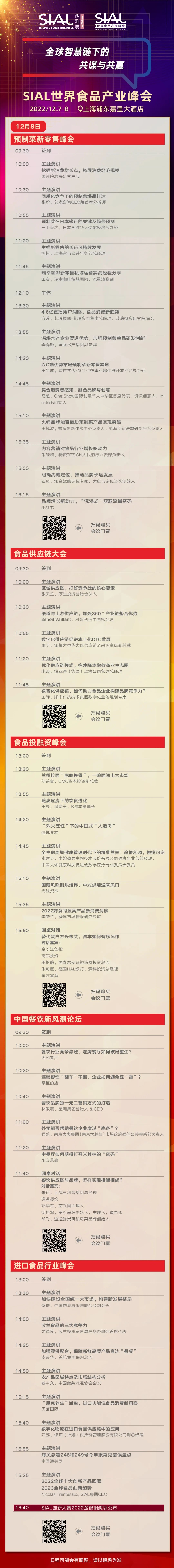SIAL世界食品產(chǎn)業(yè)峰會將于2022年12月7日-8日如期舉辦!峰會將以“全球智慧鏈下的共謀與共贏”為主題舉辦包含預(yù)制菜、新零售、供應(yīng)鏈、農(nóng)業(yè)食品科技、食品投融資、營養(yǎng)健康食品、植物性食品、乳業(yè)、肉類、飲品、中餐、進口食品在內(nèi)的多場主題論壇。